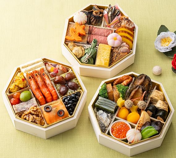 このように、八角重は単なる容器ではなく、縁起・美観・実用性を兼ね備えたデザインであり、おせち全体の価値を高めています。